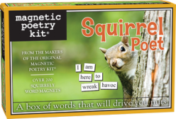 Call them tree rats or call them cute, the squirrel is one of the most successful of all mammalian wildlife species. They are everywhere. So where, we ask, is all the squirrel poetry? Help us rectify this inequity with the Squirrel Poet Kit. Praise their cunning, cuteness and athleticism one day, then deride their mischief, gluttony and destructiveness the next. Scatter these words like so many acorns on your fridge door, and let the squirrel poetry movement begin!
