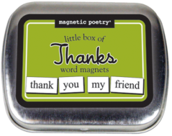 A cute little tin filled with words that are thankful. As a gift, a nice little token that won't soon be forgotten.